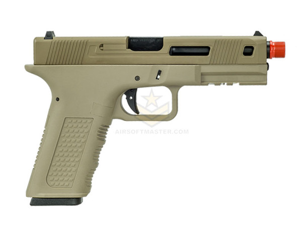 The Echo1 Timberwolf Xtreme XTR Gas Blowback Pistol in Tan features a ported slide to make it lighter in weight and for a fster cyclic rate and trigger reset. This will enable the airsoft pistol to charge and ready to fire the next shot faster than usual. It also comes standard with a threaded orange tip and a Black metal outer barrel that does not only make it look good but at the same time making it reliable.